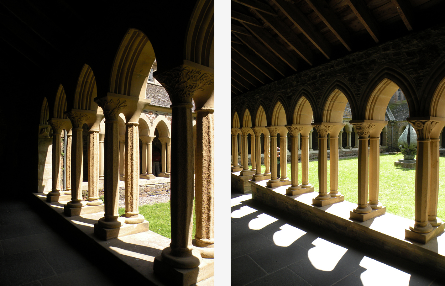 Walking through the main entrance takes us straight to the Abbey cloisters, which have been beautifully restored. I pause for a few snaps before entering the cozy Abbey church. Surrounded by thick walls of stone and sheltered by a wooden roof, I felt enormously safe and secure.