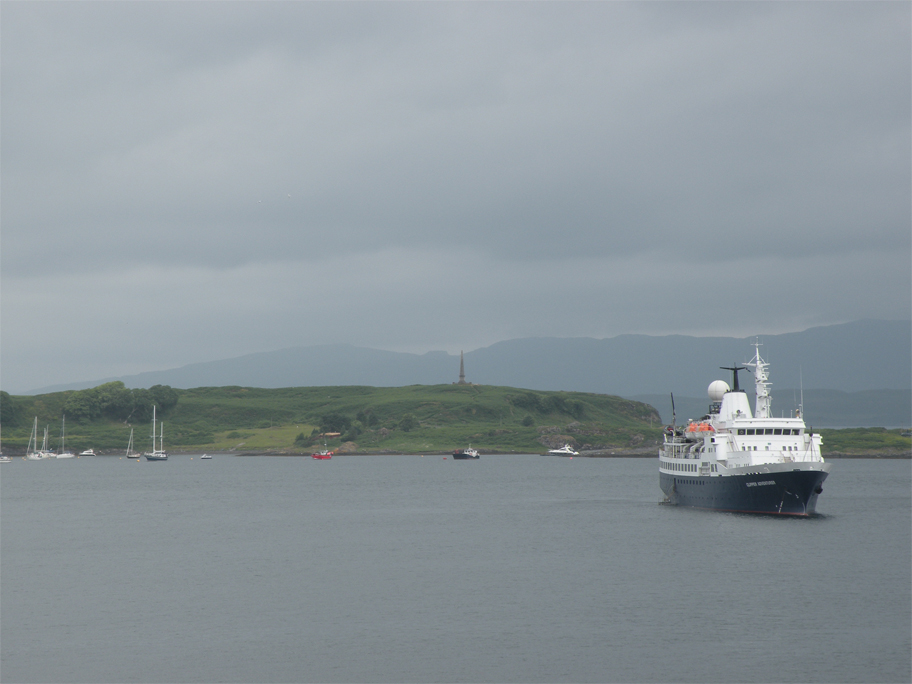 In the rainy weather the area could pass for Canada’s Strait of Georgia, the stretch of sea between Vancouver Island and the British Columbian mainland. From the ship we see the other side of Kerrera and a lonely lighthouse off the island of Lismore.