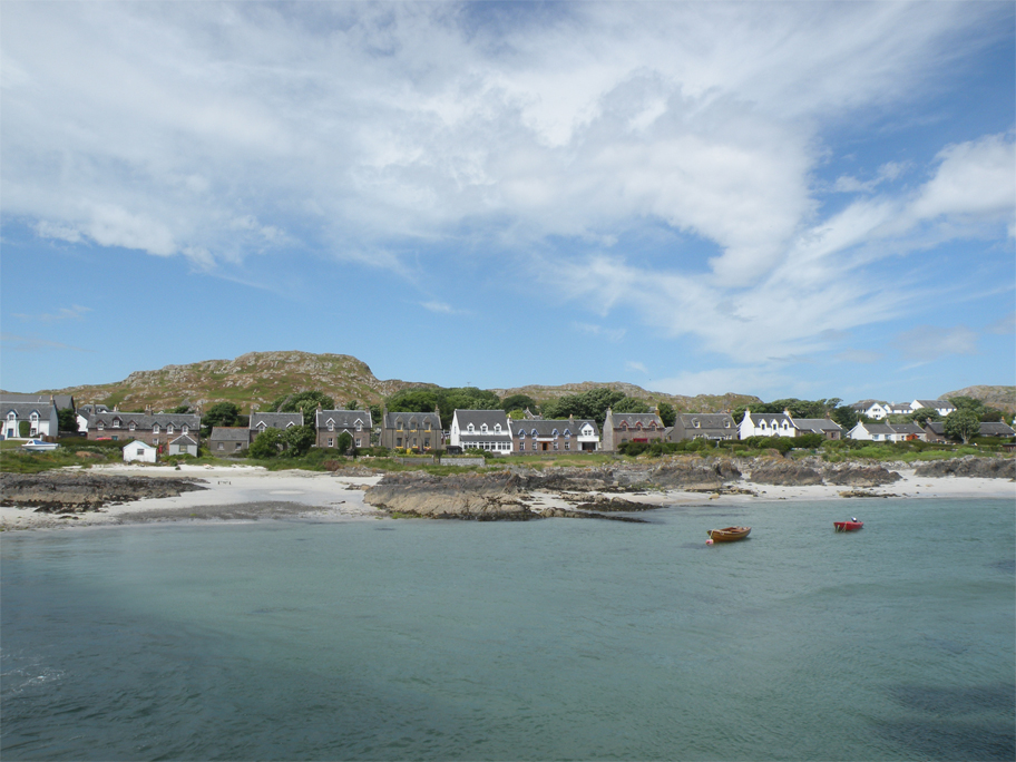 In the distance we could see Iona gleaming in the midday sun, its gentle profile seemingly embracing the blue horizon. With its sparse, windswept appearance, the island looked every bit the secluded retreat we had imagined it to be.