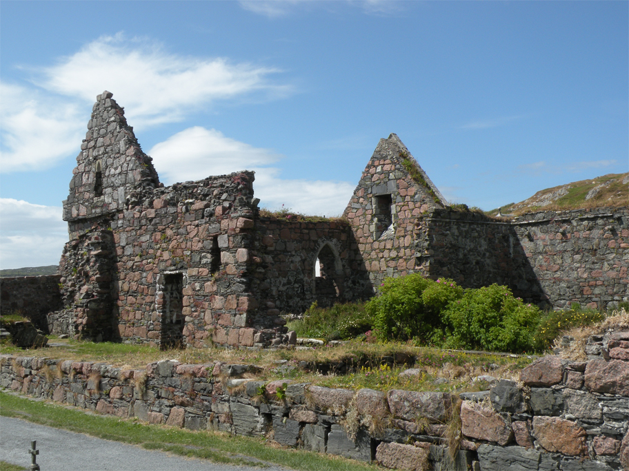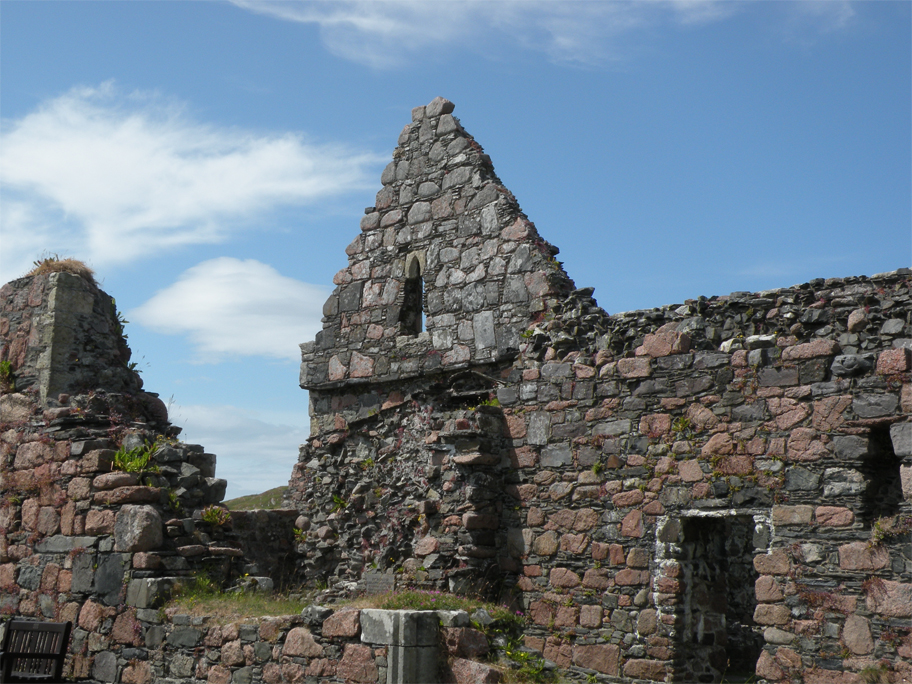Our first stop after disembarking from the ferry was the ruins of the medieval nunnery, which was in use between 1208 and the 16th-century Scottish Reformation. Standing adjacent to the island’s main settlement, Baile Mor, it is a beautiful composition in grey and pink stone. The peaceful, well-maintained gardens are definitely worth a stroll as they provide the best way to view the ruins.