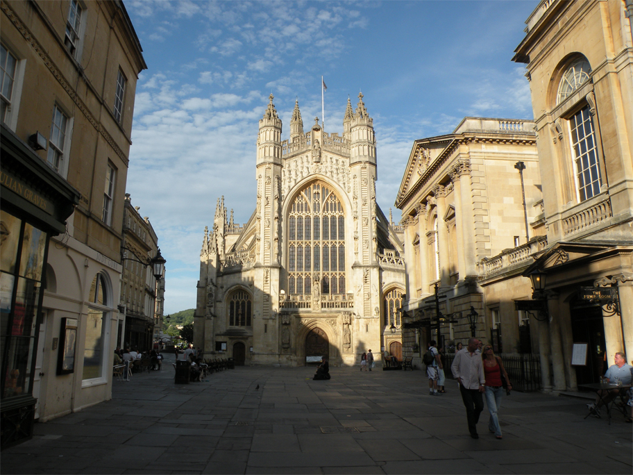 Instinctively my feet took me to the square in front of Bath Abbey, one of England’s most beautiful churches and the venue for my graduation. I had seen this place thousands of times but nothing had prepared me for the sheer beauty of the scene. In the evening sun the Abbey’s west front was bathed a gentle cream colour, bringing the decorative angels and ladders to life. Near the middle of the square, a lone busker was entertaining the light numbers of people, and further beyond a gap revealed the verdant slopes of a nearby hill.