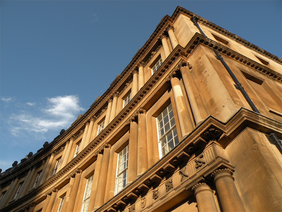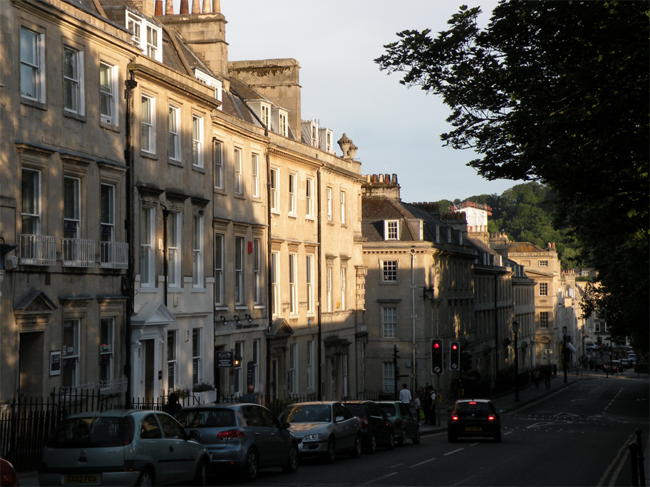 As I reached the Circus, the sun was already casting long shadows across the giant plane trees at its centre. I turned right to see a warm, honey-coloured stone façade looming above me. At the other end of the gentle curve, the terrace was a dazzling shade of gold. Even after more than 4 years here I was completely captivated by the colours of Bath at sunset.