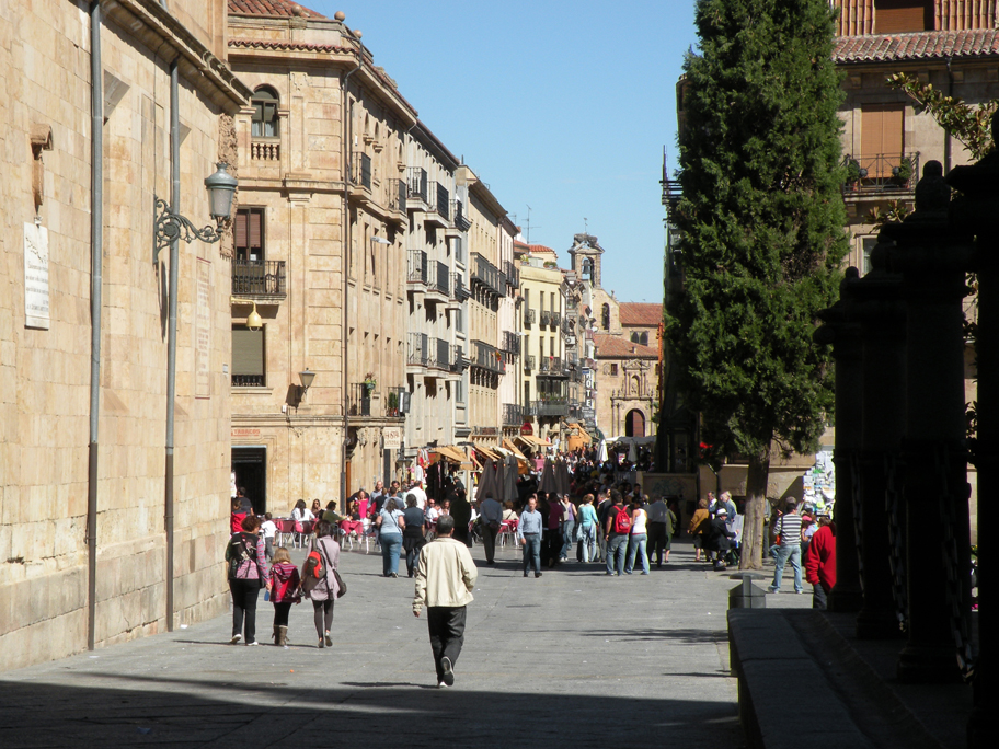 It’s 10am on a chilly Saturday morning and I am standing in the middle of Plaza Mayor, at the heart of Salamanca’s historic centre. Under a cloudless sky the morning light falls gently onto the carved stone facades and wrought iron balconies. Composed, elegant and lavishly decorated, it is the ultimate Plaza Mayor, easily besting the more famous one in Madrid.