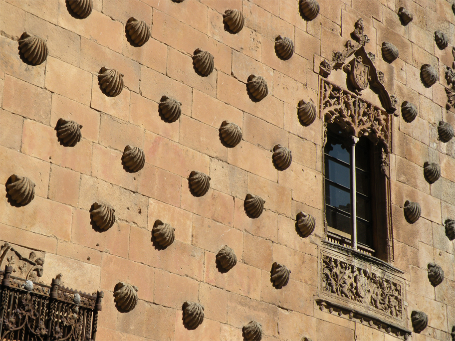 Roughly halfway between Plaza Mayor and the cathedrals stands the Casa de las Conchas, an impressive edifice whose walls are decorated with more than 300 carved scallop shells. Now a public library, the building was formerly the mansion of the Maldonado family, headed by a knight of the prestigious Order of Santiago.
