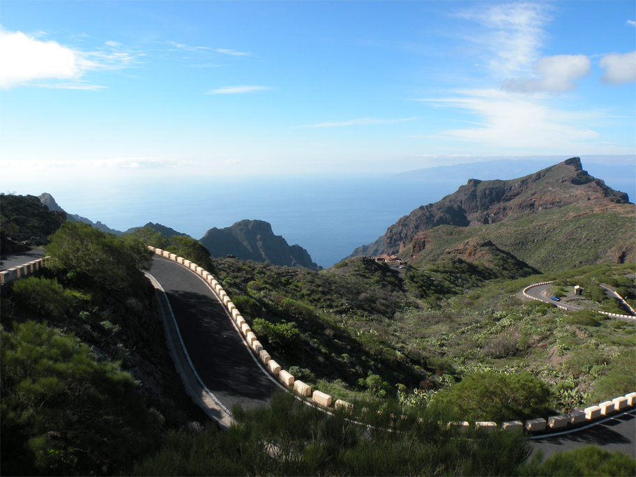 We drove past the town of Icod, with its giant broccoli-shaped Dragon Tree, and then a small extinct volcano. Once we got to the next town we made a left and began going up a series of switchbacks and tight curves. In a way it was reminiscent of the French Côte d’Azur and the south side of Hong Kong Island.