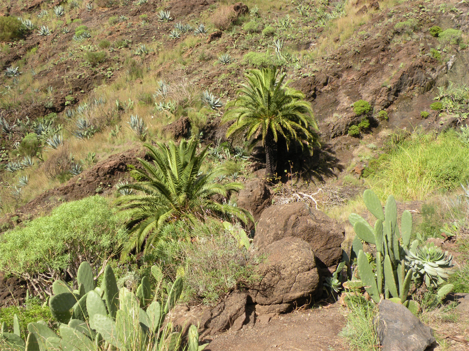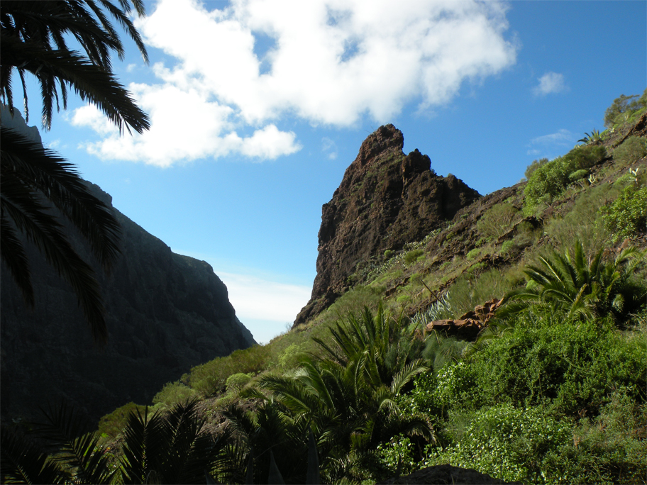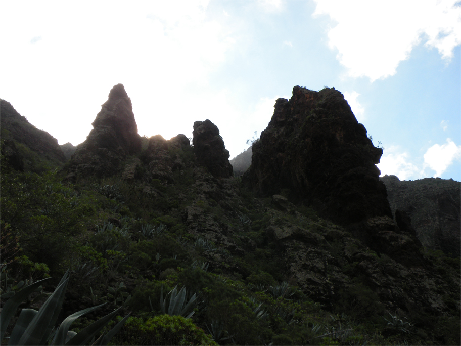 As we descended into the gorge we came face-to-face with a landscape that was nothing short of spectacular. In an instant it became obvious as to why this trail was so popular with German hikers. With its towering cliffs and basalt veins, Masca Gorge looked like something out of the Wild West or a James Bond movie. All that was missing was a parachutist and a daring air chase in military jets.