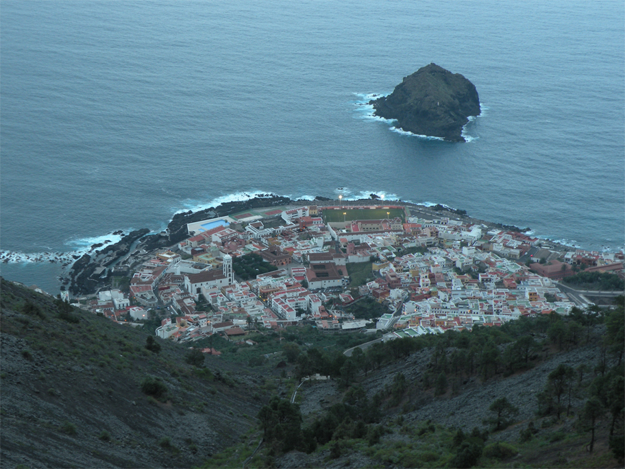 The tour ended at a lookout over the town of Garachico (‘Gara’- rock, ‘chico’ – little), named after the rock formation just offshore. In 1706 it was destroyed by a volcanic eruption: for several weeks a lava flow surged down the slopes above the town, covering its harbour and eventually enlarging the rocky peninsula on which it stood.