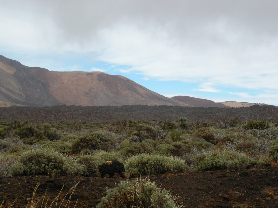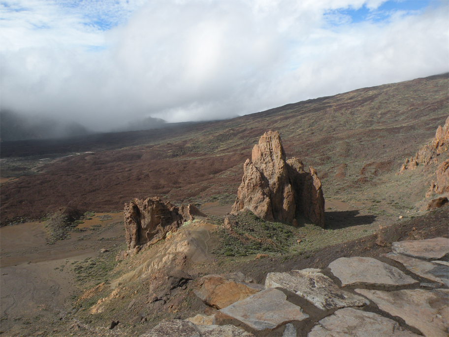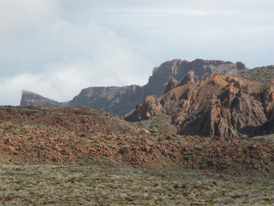 From a high viewpoint we spent a good part of an hour marvelling at the sheer scale of our surroundings. On one side the ridge dropped down to a vast crater filled with lava beds, and on the other the parador sat like a toy house amidst a large bowl of scrubland. We made ourselves comfortable and gazed towards El Teide, entranced by its game of hide-and-seek with the passing clouds.