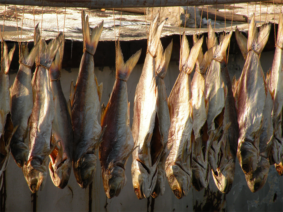 After wandering down another country lane we encountered a row of fish, gutted and hung by their tails, and then platters of dried whitebait – the perfect ingredient for those warming winter soups.