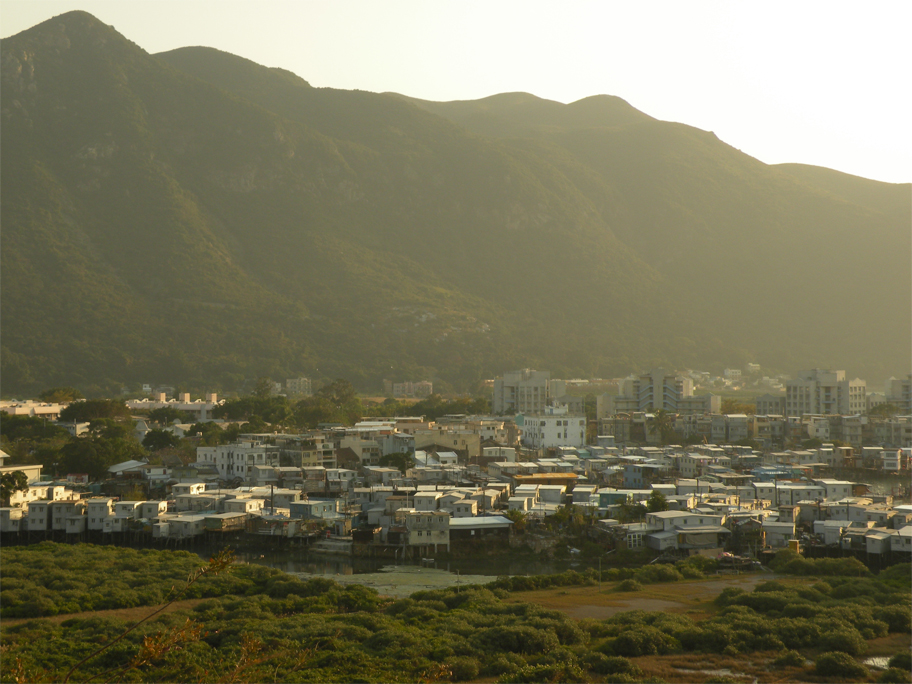 Within no time we arrived at the top of a small ridge. My father and I had stumbled upon this natural lookout on our previous visit three years ago, but we had never returned since. The view was just as beautiful as I had remembered. Below us the mangroves rolled gently towards Tai O, its idyllic townscape broken only by the stepped profiles of several government flats. Further beyond, a serrated ridge sheltered the coastal plain from the open waters of the Pearl River Estuary.