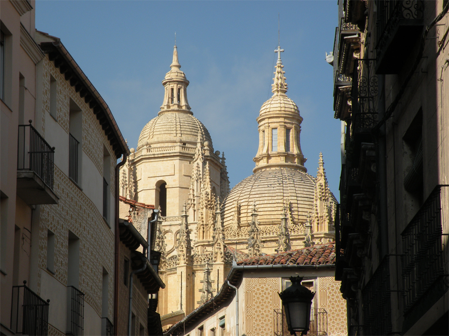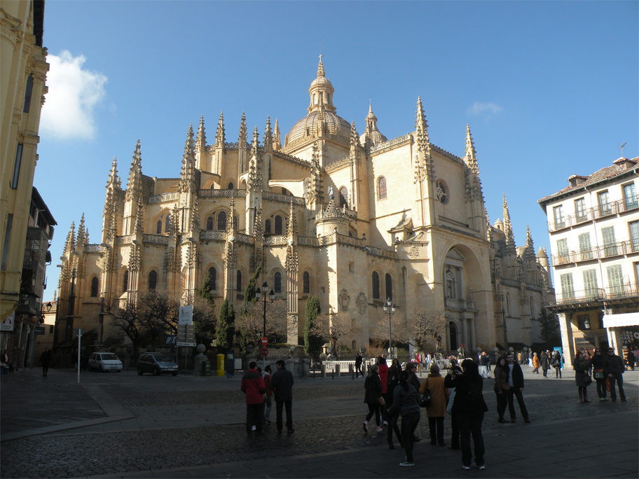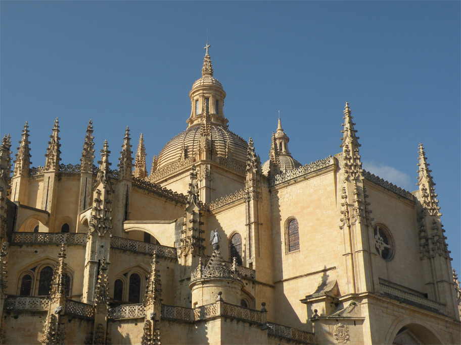 Roughly halfway between the aqueduct and Segovia’s Alcázar (its castle), the Catedral de Santa María presides over the main square of the city – the aptly-named Plaza Mayor. This was the last gothic cathedral built in Spain, replacing an earlier one destroyed during the Revolt of the Comuneros (1520-21). Despite its riot of pinnacles and delicate rooflines, the building does have the appearance of being rather severe. For all its austerity the interior is still worth a look: its highlight is the wonderful chapel of Santísimo Sacramento (Holy Sacrament), shielding a brilliant wall of gold beyond a face of metal openwork.