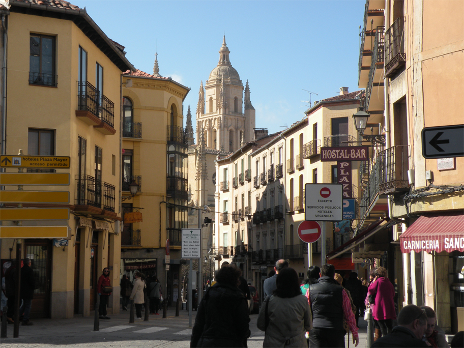 When night falls and the busloads of day-trippers leave Segovia, the city reverts to its timeless medieval charm. It’s nearing 8 o’clock on a Friday evening and I have just completed the 3-hour journey from Salamanca. The walk to the hotel takes me through a warren of narrow, atmospheric streets and animated squares, interspersed by the odd floodlit monument. Although it has only been a good 40 minutes since my arrival, I am already falling in love with Segovia.