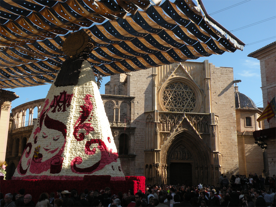 Towards the end of the festival, the falleros and falleras embark on a long procession (L’Ofrena) from their respective neighbourhoods. Amid the sound of drums and trumpets whole families join in on the parade, all the while clasping floral offerings for the enormous statue of the Virgin Mary. Over a period of 2 days, men get to work converting the frame of wooden slats into an astonishing dress made entirely of flowers. Day and night the falleros/falleras stream in, announced by a commentator booming in proud Valenciano, and one by one they lay their fragrant offerings at the statue’s feet. Many come away with tears in their eyes.