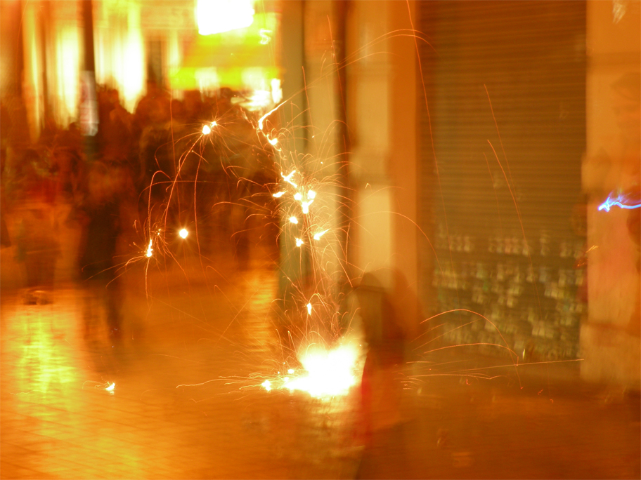 BANG! BANG! BANG-BANG-BANG!!! WHEE…… BANG-BAR-RA-RANG!!! The orchestra of noise thunders across the square, building and gathering momentum with each explosion in a puff of white smoke. For the next 5 minutes we stand anchored to the ground, mouths agape and ears close to ringing, until the buildup to the grand finale. Accompanied by a contingent of red and green fireworks, the final, colossal bang is nothing short of spectacular. And then, a split second of stunned silence. With fists in the air the crowd lets out a momentous cheer and a wave of applause.