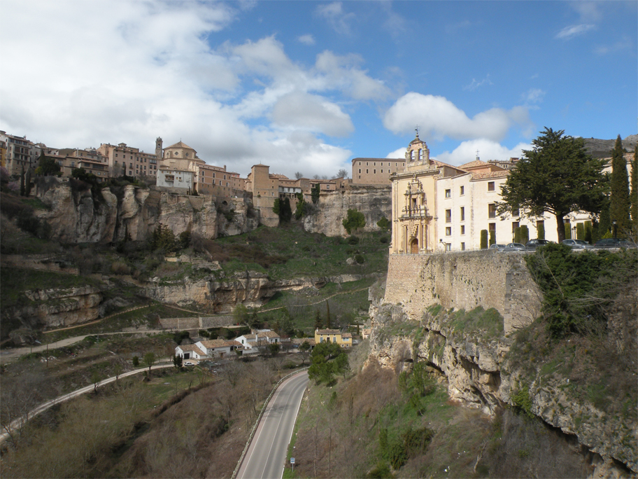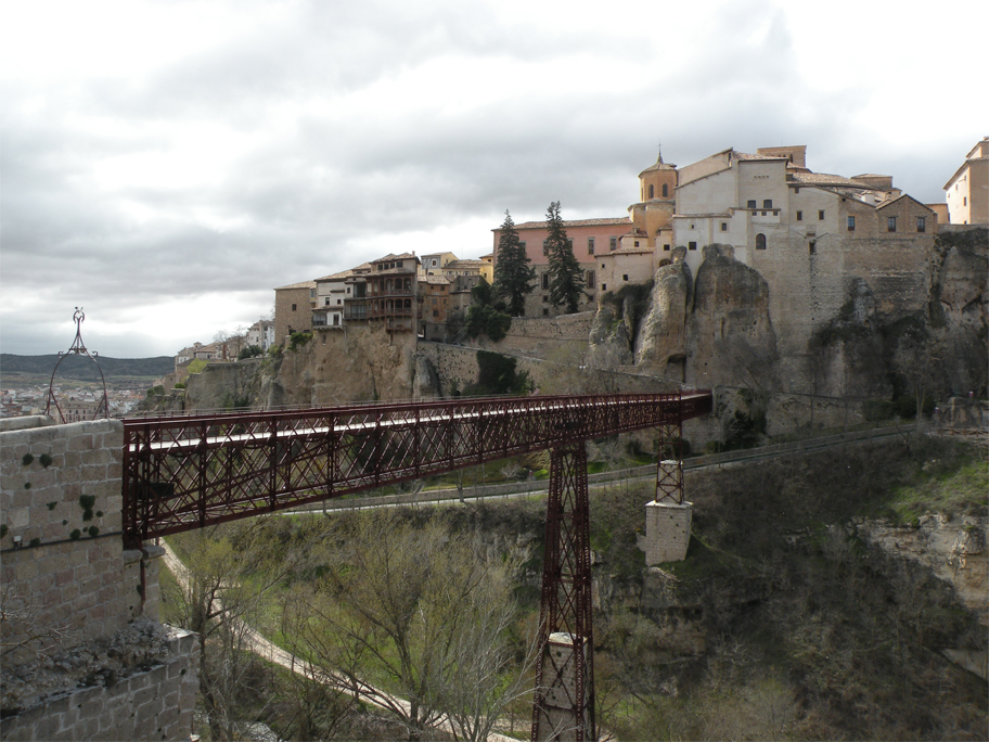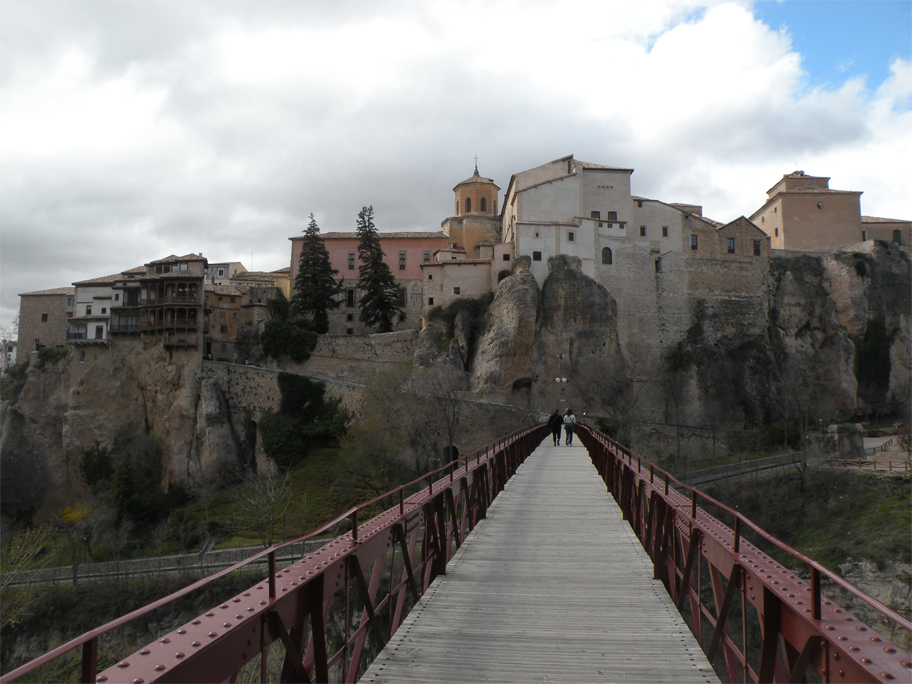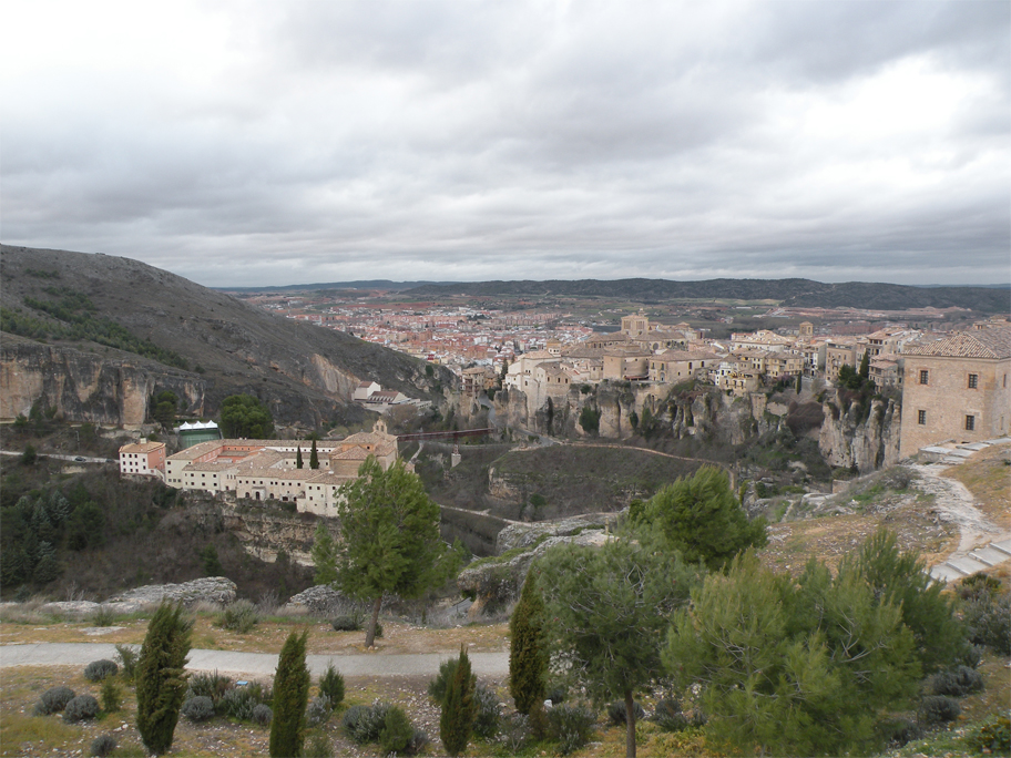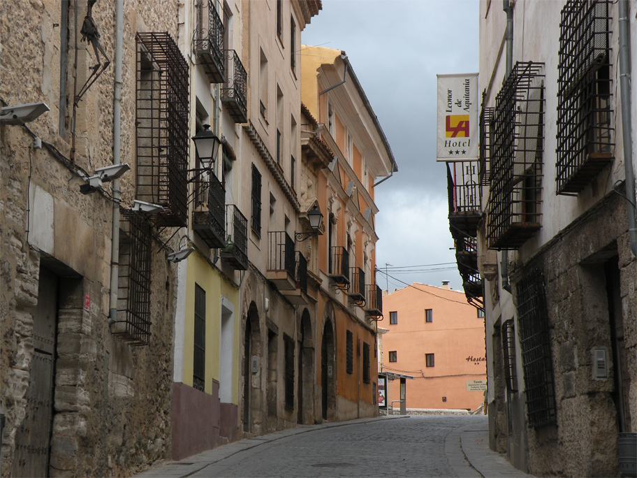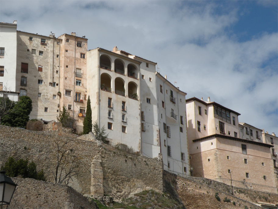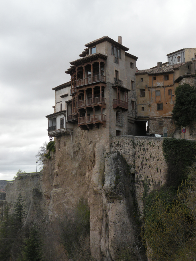 By Sabrina’s initiative we are spending the night here, in a small provincial capital situated halfway between Madrid and Valencia. Founded by the Arabs in the 8th century, Kunka – as it was then known – was built to defend a strategic hilltop at the junction of the Júcar and Huécar rivers. Its fortifications were so strong that it took more than 9 months for a Christian coalition to put an end to Muslim rule. To this day the old city still sprawls along the ridge, forming an uneven, formidable wall pierced by small windows and the occasional archway.