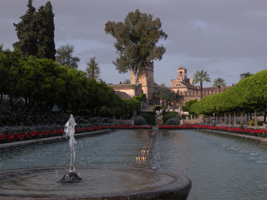 It’s the end of the day and we are in the gardens of the Alcázar de los Reyes Cristianos, a medieval fortress that once served as a royal residence and the seat of the Spanish Inquisition. Just ahead of us the path is lined with trimmed cypresses, their tapered forms casting long shadows across the ground.
