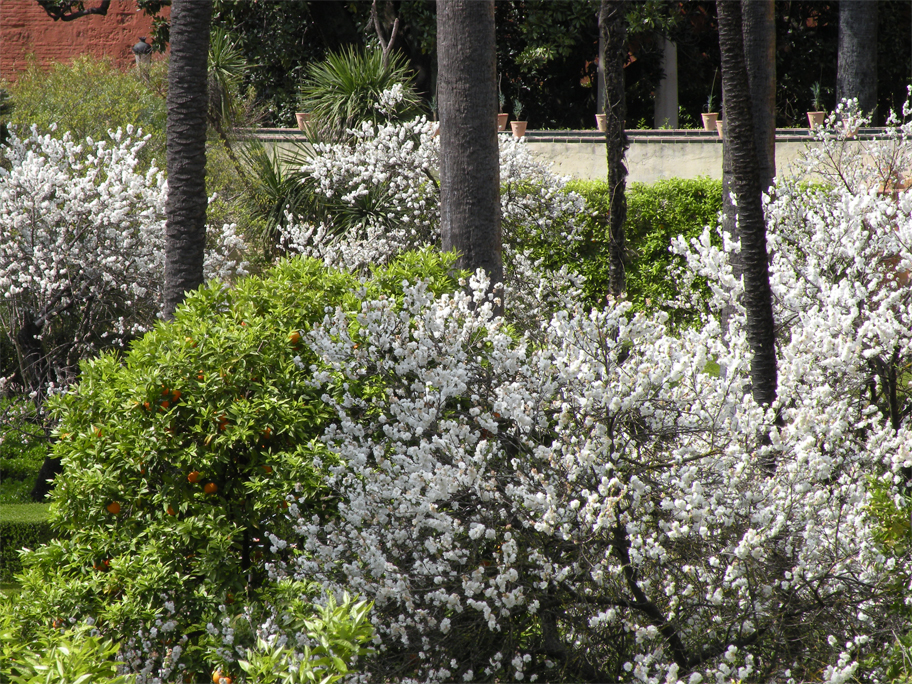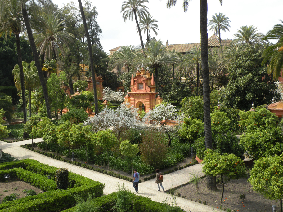 While doing dazed circuits around the Courtyard of the Maidens, so named for a myth invented to bolster the Christian re-conquest, we spotted splashes of verdant green through the delicate windows. It turns out that the Alcázar possesses not just any garden, but the sort of wonderland that you would imagine in fairy tales and stunning period films.