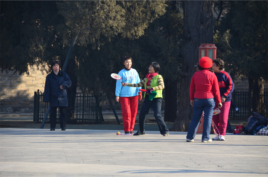 At the entrance to the Circular Mound Altar, the first of several sights spread along the central axis, a troop of middle-aged couples move to the same, hypnotising slow dance. Nearby, the air echoes with the sound of jianzi, a traditional game with a history of nearly 2,000 years. Known in the English-speaking world as “shuttlecock” or “featherball”, the sport is popular throughout much of Asia.