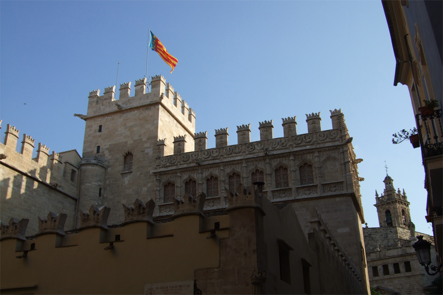 Wheels on the ground, we emerged from the waiting hall, brightly decorated with florid Modernist patterns, and into the bright Mediterranean sky. To our right stood the red-brick Plaza de Toros, and just across the sweeping avenue the Ciutat Vella beckoned.