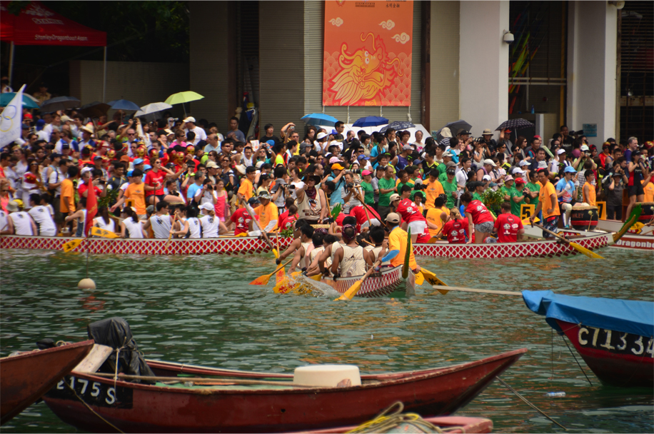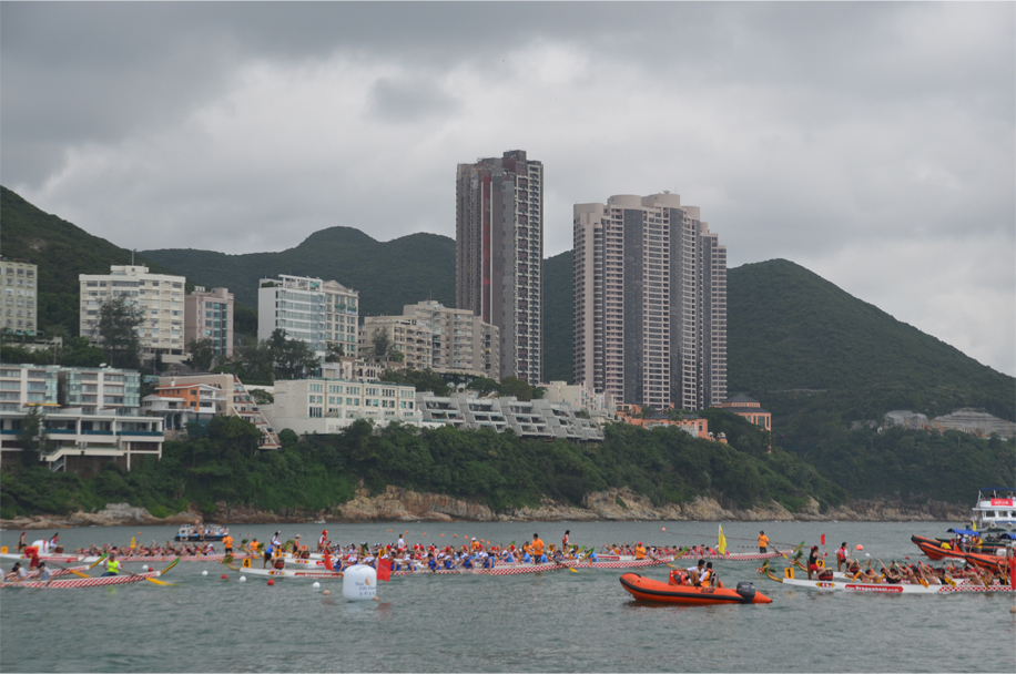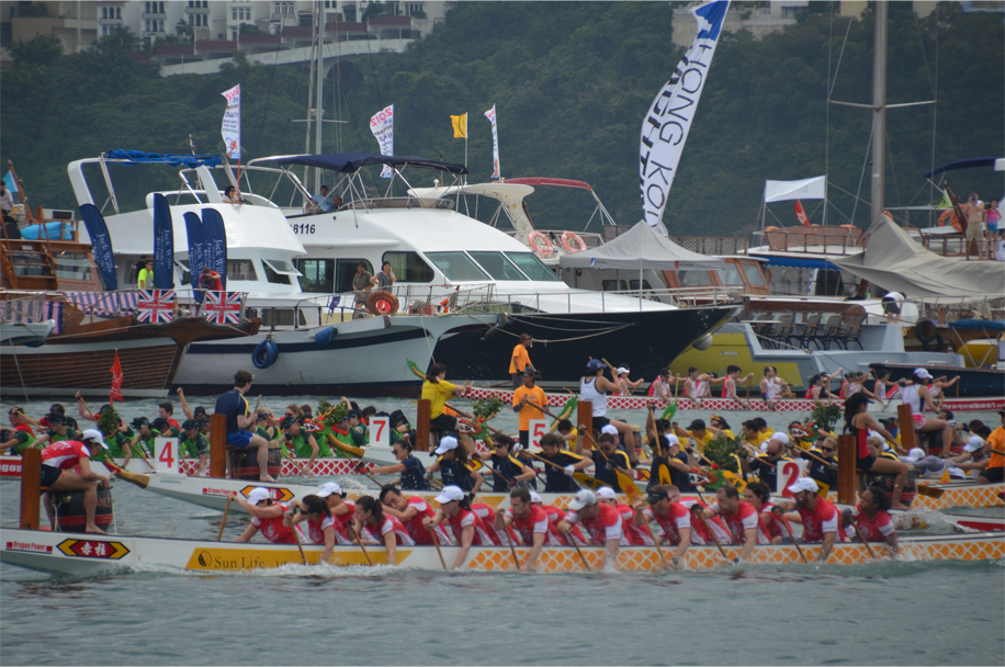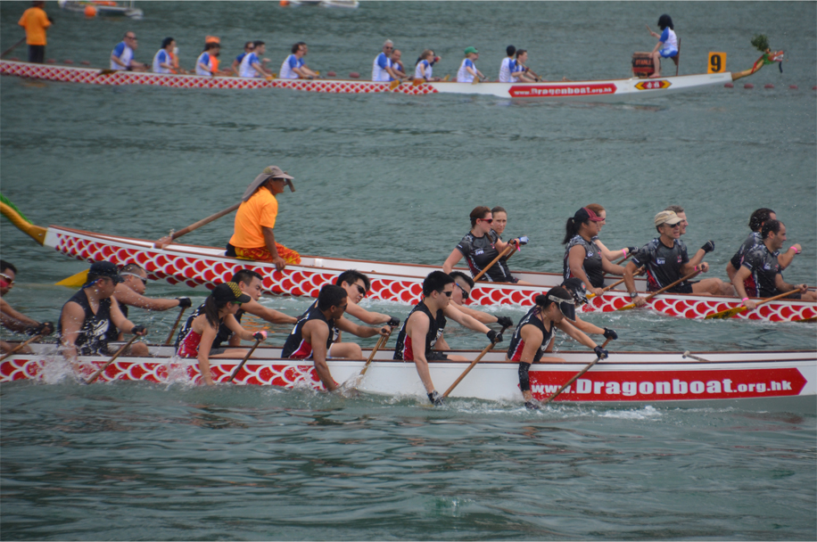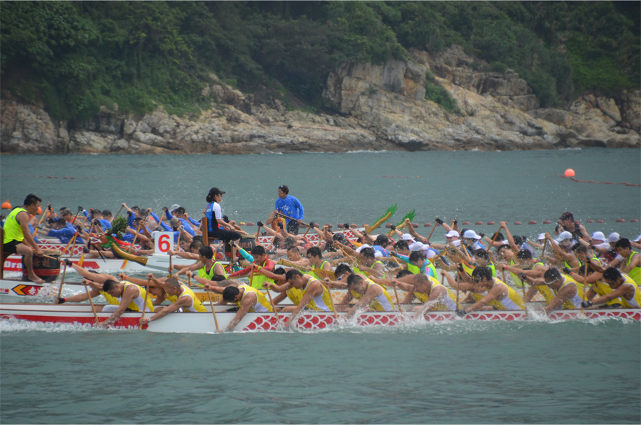 Comfortably positioned on an upturned keel, with legs outstretched on the rocks, I take in the saltiness of the ocean breeze. In the distance the race lanes are lined by a double row of pleasure boats, each one loaded with an eager throng of spectators. We hear the distinct ‘pop’ of the starting gun, then the muffled beats of drums, gradually building in intensity with each passing second. Before long a series of narrow vessels emerge from the scene, their painted scales mirroring the waves beneath them. Arms poised and thrusting paddles into the water, the racers power forward in perfect formation.