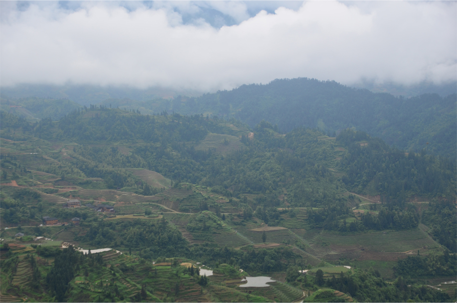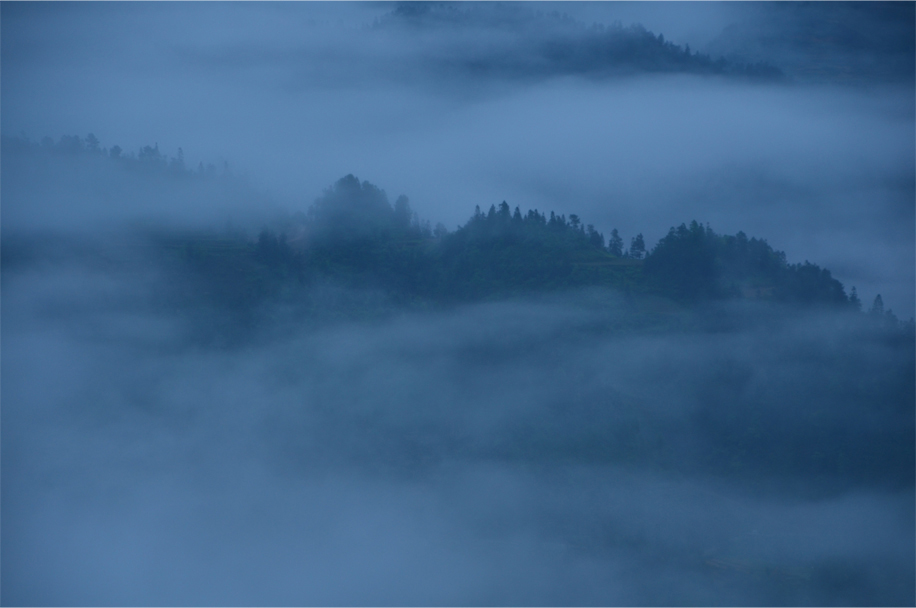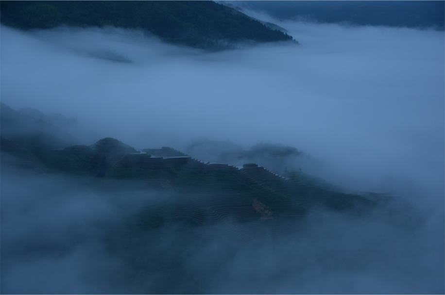 I strain my ears to hear the comforting swish of mahjong tiles being “washed” on a vinyl tablecloth. But the game is interrupted by a sudden gasp as our fellow diners clamour for the front door, scrambling towards the concrete platform that abuts the guesthouse. At last light the mist has finally lifted from the valley, and the rice terraces emerge in a momentary period of clarity before fading back into the clouds.