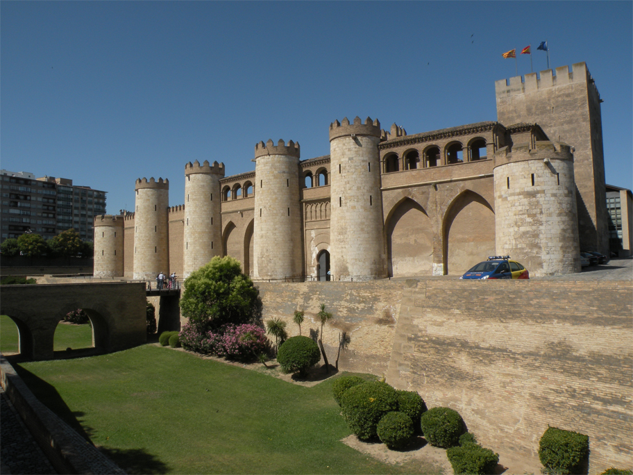 In a similar way, our explorations on foot prove more than enough to satisfy our appetite for Mudéjar architecture. On the way to the Aljafería, a fortified Moorish palace that remains more or less intact to this day, we come across the swarthy brickwork of the Church of San Pablo. The very shape of its octagonal tower – and the geometric motifs that run across it – are the legacy of Mudéjar builders and craftsmen.