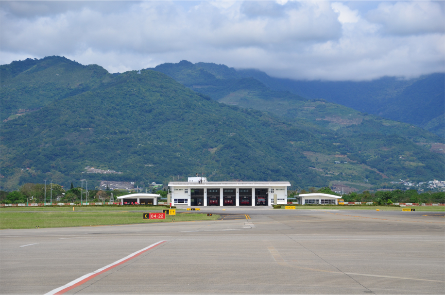 The sun sets over the runway, the Tao cultural centre and Taipower’s office
