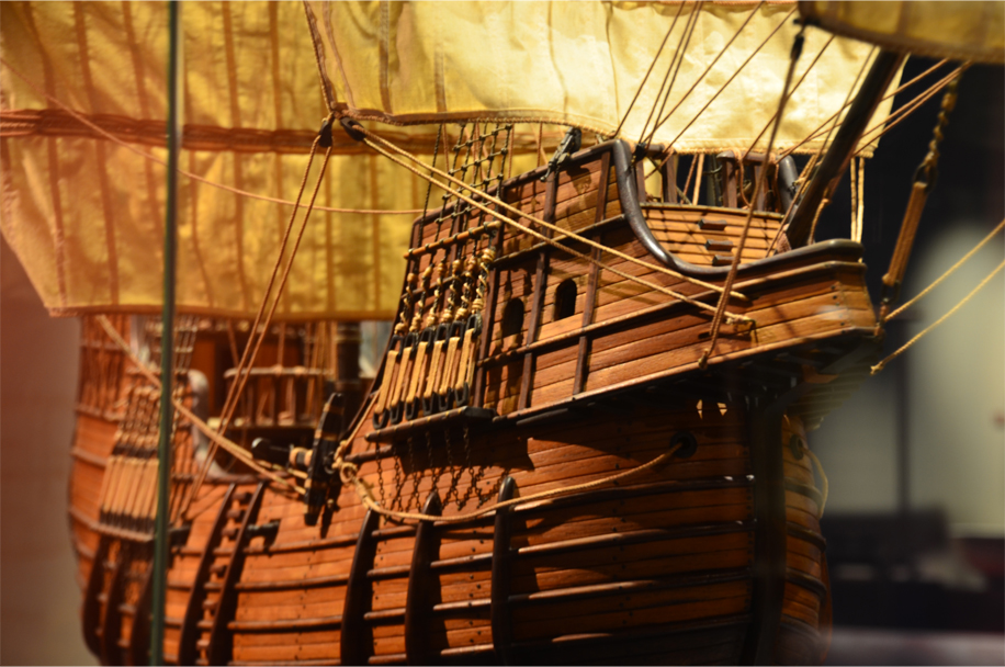 Fortuitous timing on this visit meant that I was in for a treat – minutes after ascending to the main floor, two excited teenagers alerted me to an unusual sight on the harbour. Like a phantom resurrected from the pages of history and the canvases I had just seen, a replica of a European tall ship sailed gracefully into view. Several other visitors flocked to the window, and we watched, spellbound, as it manoeuvered into position at the adjacent pier. What we saw evoked the magic of a bygone era – before the advent of air travel – and it stirred a deep desire that perhaps someday, I too would follow the fabled Spice Route.