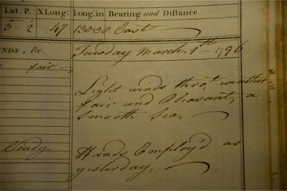 Written with a quill, the florid cursive inscribed on the pages of a ship’s logbook was still legible: “Tuesday March 1st – 1796. Light winds…, weather fair and pleasant, a smooth sea.” These were the words of Captain Charles Christie on the East Indiaman Belvedere, then engaged in the lucrative China trade.
