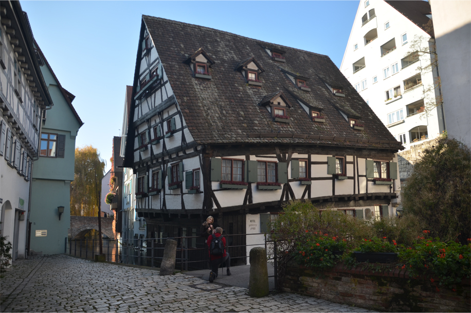 Perhaps that cyclist going past you was the ghost of Einstein — http://jmnpixels.com/2013/04/05/einstein-cycling/ — whose home town, if you didn’t already know, was Ulm. He enjoyed cycling. I certainly love the older historic German towns and would love to stay in Schiefes Haus (I’d probably slip off of the end of the bed, looking at those angles….). 🙂