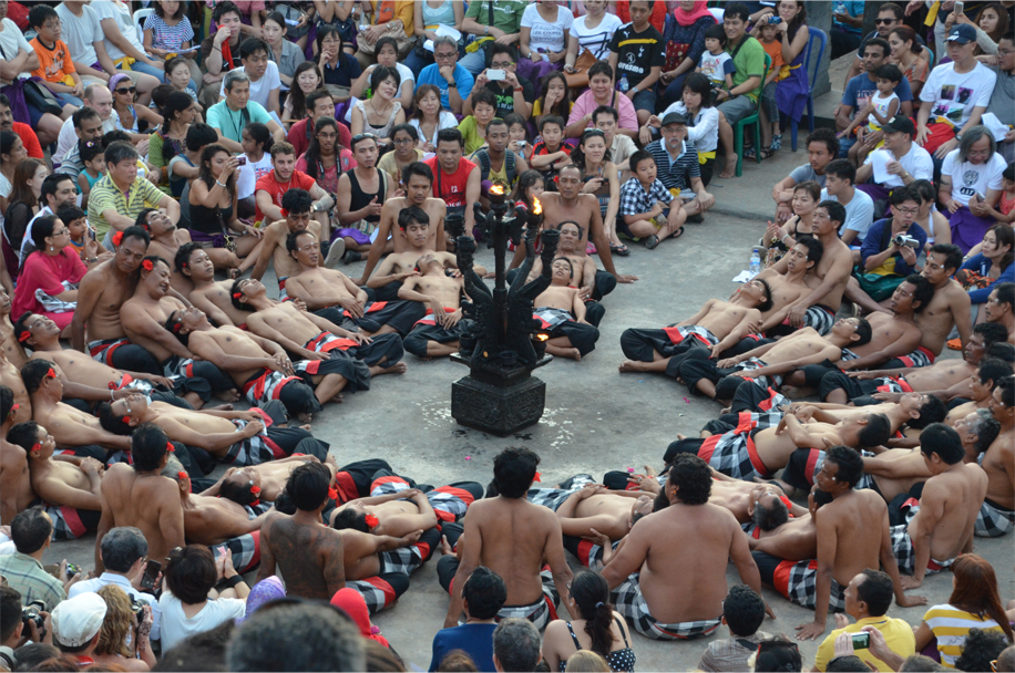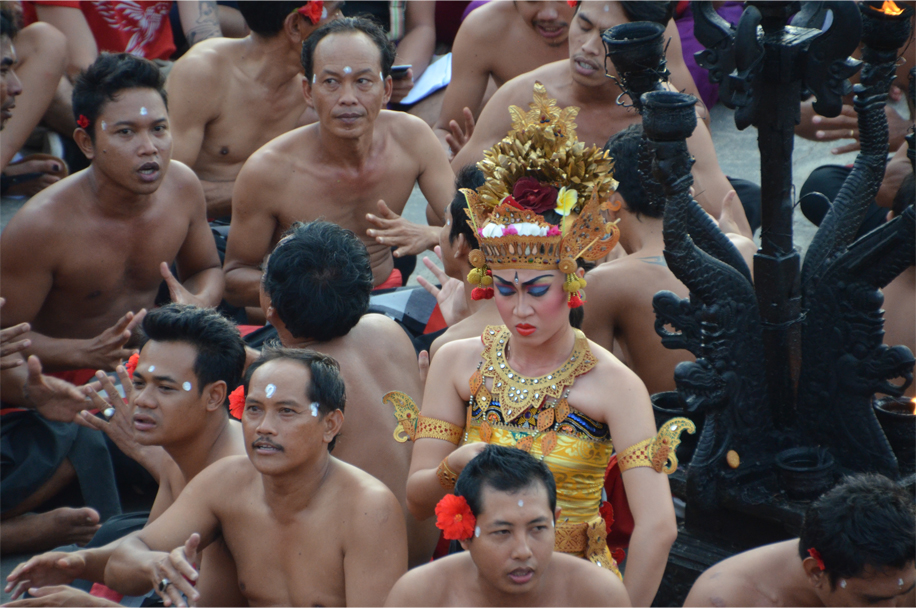 From our high vantage point I sat in awe, admiring the exquisite costumes, the skillful restraint of the dancers, the expressiveness in their eyes and facial muscles, and the haunting sound of the male chorus, whose voices ebbed and flowed in unison as they chanted “cak cak cak”.