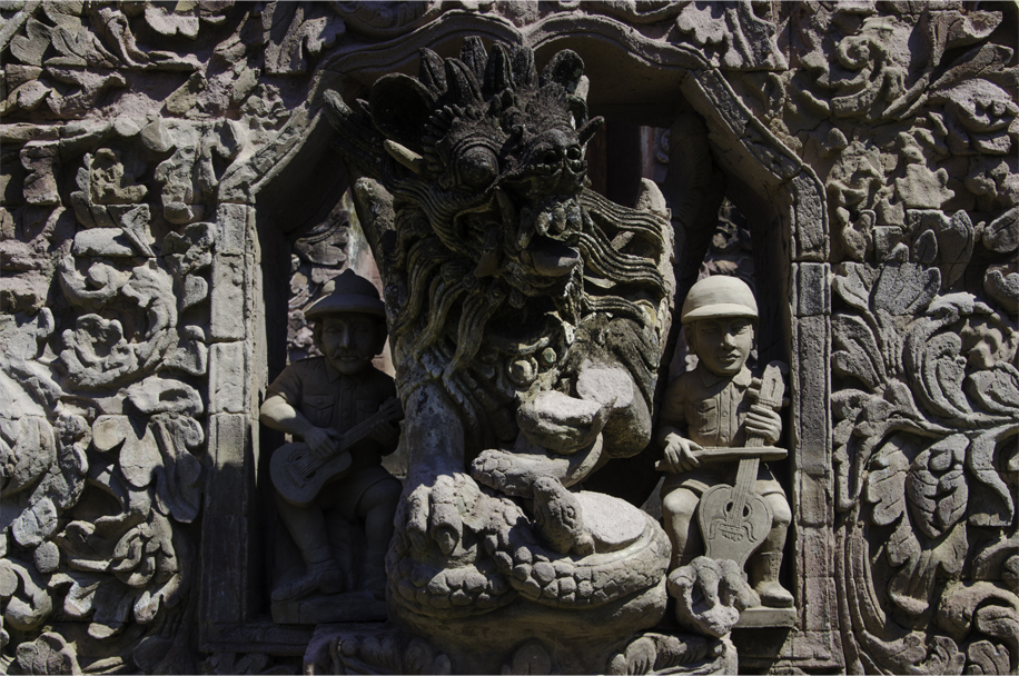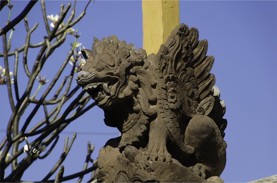 From a small pouch tucked into his belt, the temple keeper unfolded two photocopies and set them down in the shade of a pavilion, under the watchful gaze of a winged lion. Meticulously written by hand, its neat, flowery letters strongly influenced by Balinese script, one was a detailed summary of the temple’s history and its unique features. At the bottom, below a gracious apology made in case the description was boring (it was clearly not), the document was signed KT Suradnya. KT, I later realised, stood for ‘Ketut’.