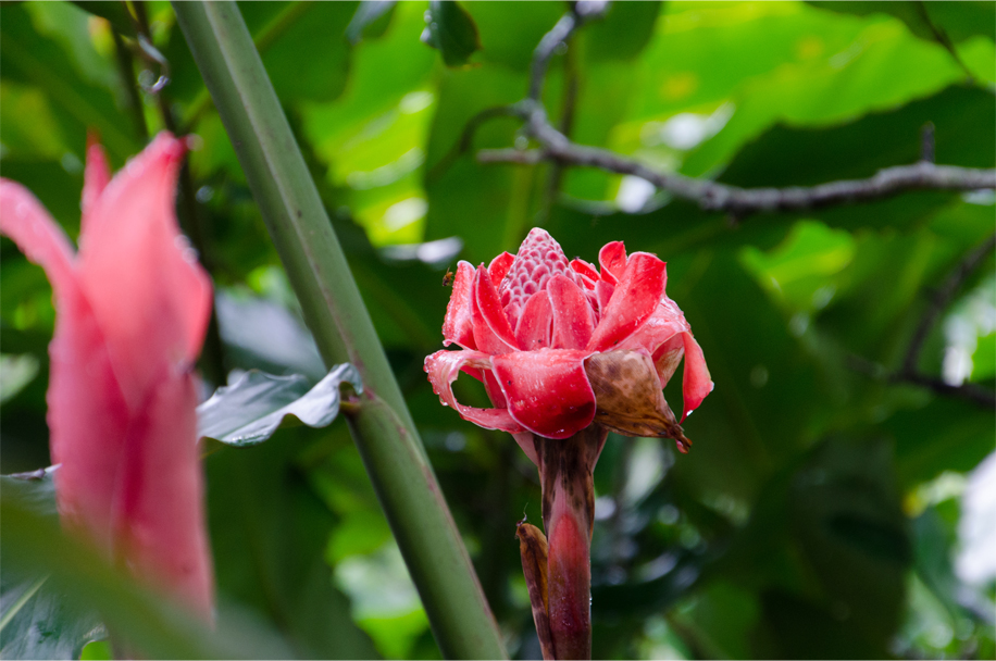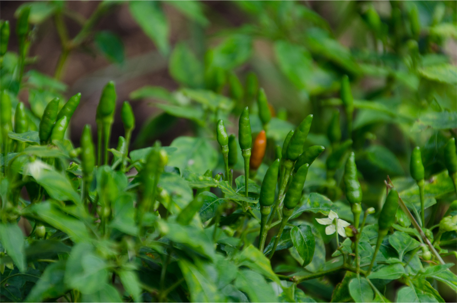 Iluh plucks several crowns of dill, tiny pods that release bursts of strong mint flavours on the tongue. We try sprigs of aromatic fern tips, then a passionfruit whose juicy, translucent beads are strangely addictive. When we return to the footpath, Iluh picks out a berry from the white pepper bush. She rubs off its delicate skin before cracking open the peppercorn, depositing it in Bama’s palm. I lean in close and take a whiff of its powerful scent.