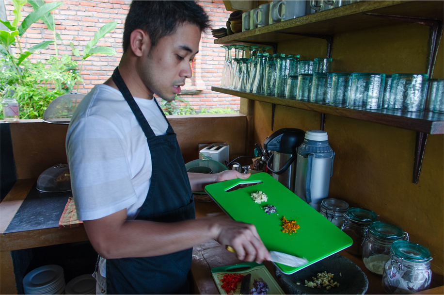 For Bama and I, that message is the ultimate confirmation to book a class the following afternoon. We are hopeful that Iluh will be our kitchen maestro, but that is not meant to be. “I am only here tomorrow morning,” she says. Our disappointment must be obvious. “Don’t worry,” Iluh adds. She smiles reassuringly. “Made is a good cook. You will learn the same things.”