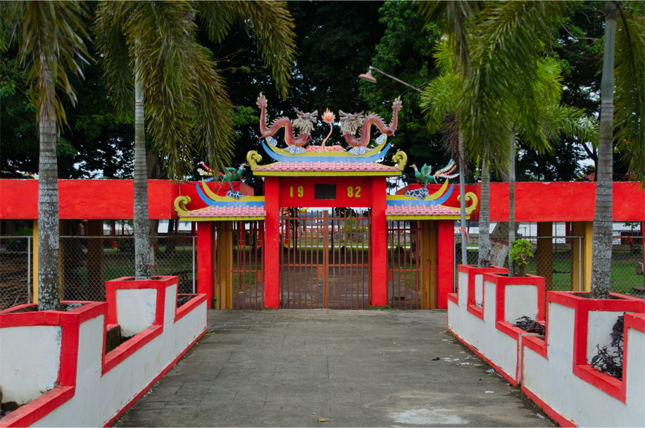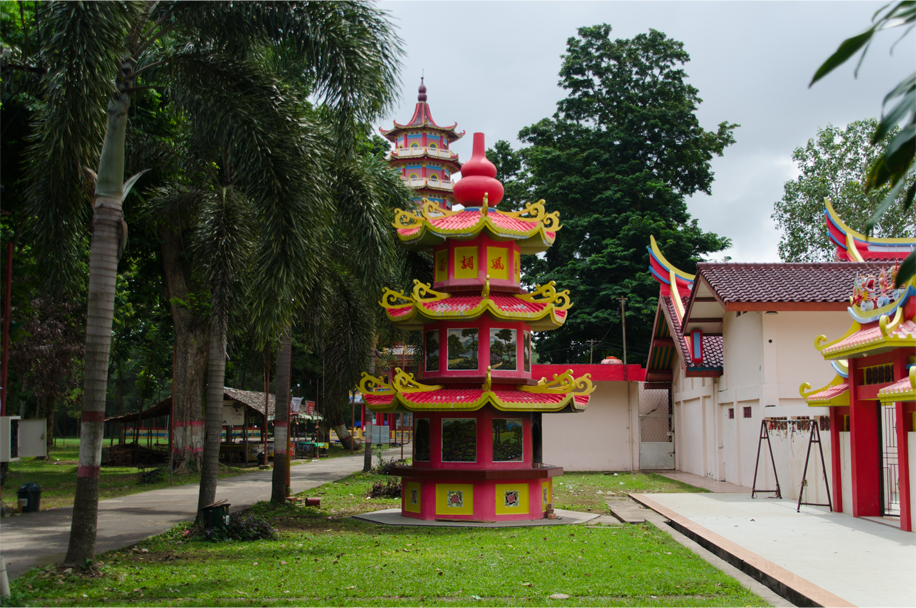 Sadly we are ten days late for Cap Go Meh. Instead, Pulau Kemaro is a wasteland of empty food stalls and rubbish strewn in the grass. In front of its nine-storey pagoda a small herd of goats sit idly on the paving stones. But we also find an inscription detailing a tragic love story involving a local princess, Siti Fatimah, and a Chinese merchant called Tan Bun An.
