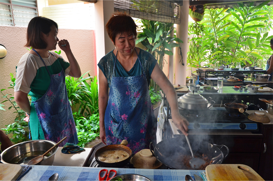 Over lunch, served with a refreshing glass of nutmeg juice, we learn that Kerabu Kay is traditionally eaten at New Year’s. Hong Bak is also reserved for celebrations, and I am surprised when Pearly tells us she doesn’t teach it unless there is a special request. So is Hong Bak the most difficult Nyonya dish in her repertoire?