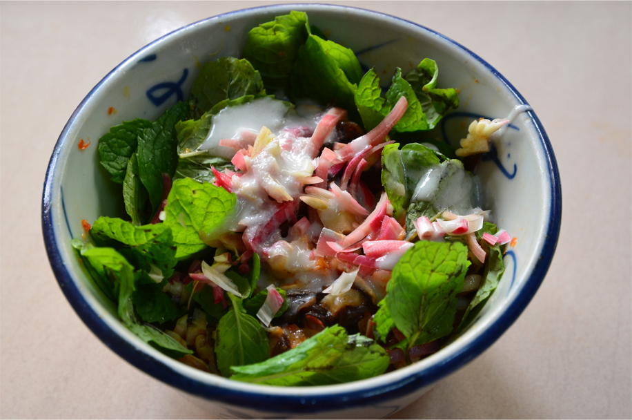 Once all the ingredients are mixed together, Pearly applies the finishing touch: a spoonful of coconut cream drizzled over the top of the salad. “The coconut cream adds such depth,” she enthuses. I watch as Pearly closes her eyes and takes a deep breath, as though she is imagining the luscious coconut cream on her palate. “You can really taste it!”