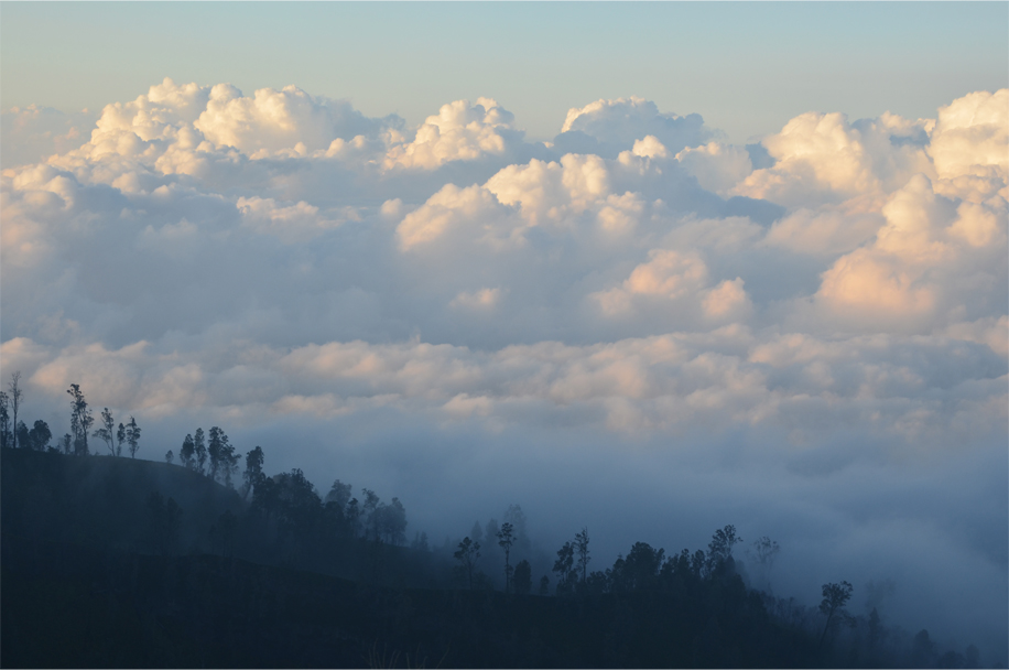 The hike to Kawah Ijen begins with a struggle. It is most likely the sulphurous fumes rising from the depths of the volcano, combined with the effects of little sleep. Bama tells me he doesn’t feel well – he is gripped by nausea. We limp along a trail of volcanic ash, taking refuge on the gnarled, low-slung branches and tree stumps beside the route.