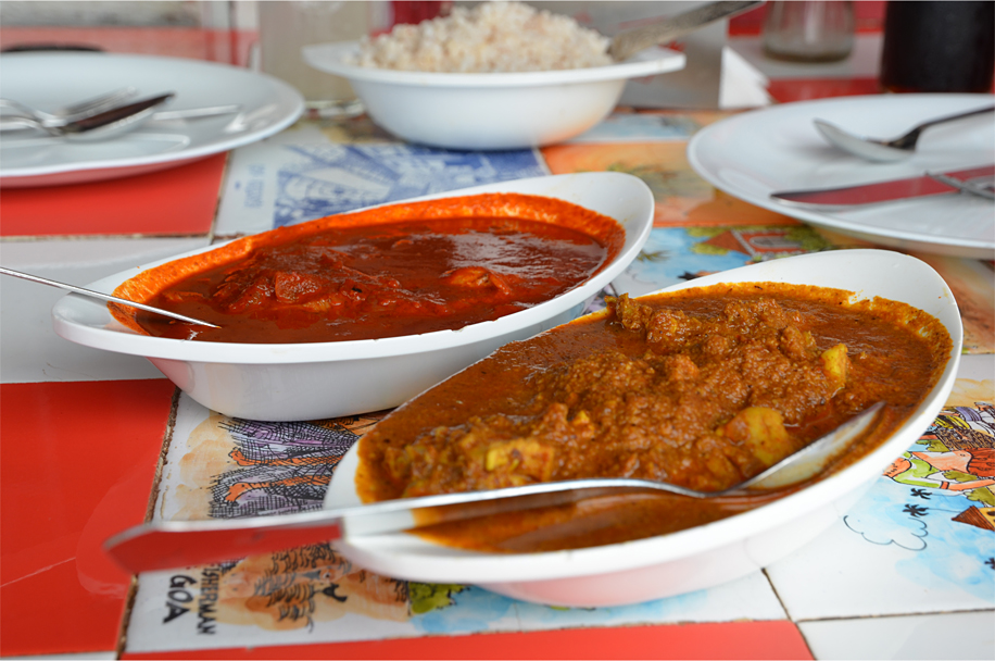 Fish vindalho (left) and chicken xacuti (right) at Viva Panjim