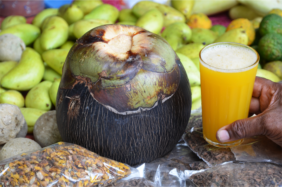Palmyra fruit, known locally as “Taal”, and a glass of sweet palmyra juice
