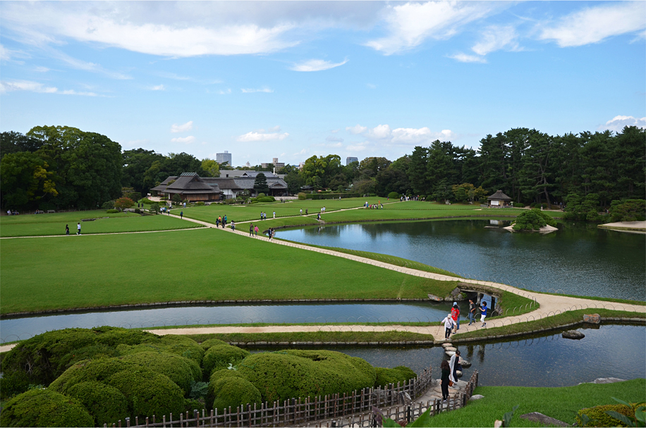“Korakuen has been designed to surprise visitors with a new view at every turn, in accordance with a style known as kaiyu, or “scenic promenade”. – I’ve heard of this concept with designing hiking trails in the forest, having them dip in and out of the trees to offer periodic views.