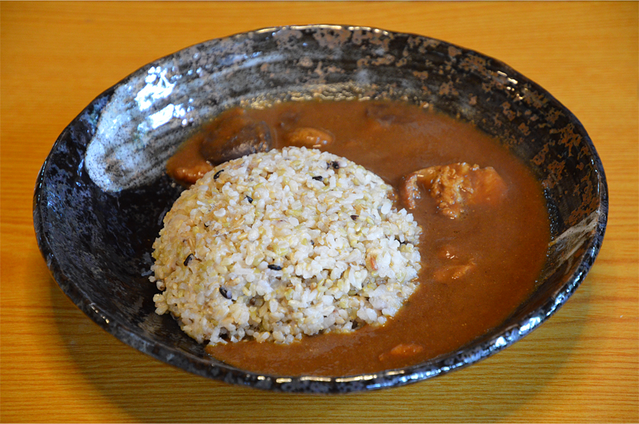 Bama and I settle on a late lunch at a small, cozy restaurant outside the southern gateway to Korakuen. Here, we sit cross-legged on tatami mats, slurping up hand-pulled tenobe udon served with onsen egg – precisely boiled so the yolk remains runny – not to mention chopped spring onion and a cloud of fried tempura batter. Equally delicious is the organic rice and chicken in a savory-sweet peach and grape curry.