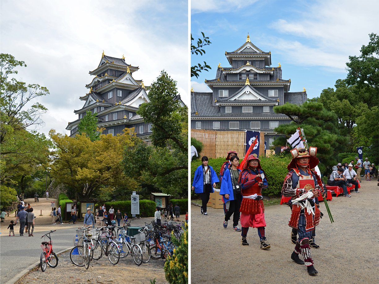 I forgot to add that Okayama is a very bike-friendly city. You could easily take a ride from the train station all the way to the castle and garden along a wide, tree-lined boulevard!