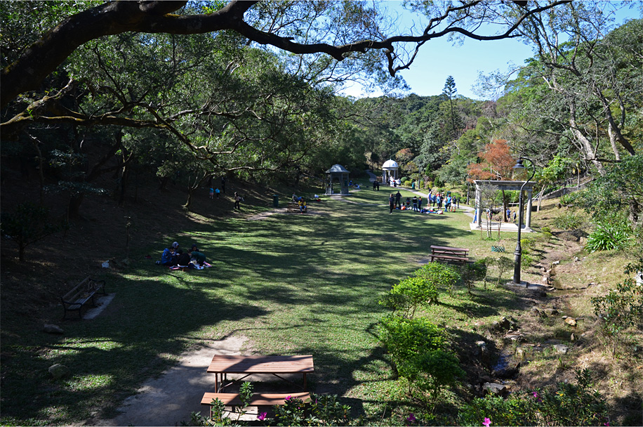 This time we headed to the Peak for a two-hour ramble, first to the lookouts along the morning trail (also known as the Peak Circle Walk), then a narrow road that led onwards and upwards, past some of Hong Kong’s most expensive real estate. Our goal was Victoria Peak Garden, site of the Governor’s summer residence in early colonial times and a magnet for families picnicking with their dogs, not to mention young couples in full garb for pre-wedding photos. We walked past the gate lodge – a whitewashed relic from 1902 that looked straight out of London – and discovered lawns dotted with flower beds and cast-iron gazebos. On the granite platform where the Governor’s mansion once stood, a simple pavilion afforded a sweeping vista over the hills and smokestacks of Lamma Island.
