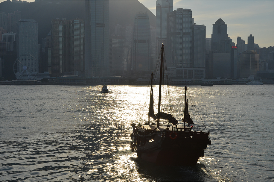 We disembarked on the other side, leaving the crowds at the ferry terminal to find locals and tourists alike filling the benches built into the promenade, as a stream of ships went to and fro across the waters – pleasure yachts, tugboats, barges, and a variety of vessels that offered hour-long harbour cruises. Bama and I stood marveling at the scene, with its backdrop of forested hills and a legion of glass-and-steel skyscrapers that glimmered in the late afternoon light. Although I’d spent most of my life in Hong Kong, this was one view that would never grow old. ◊