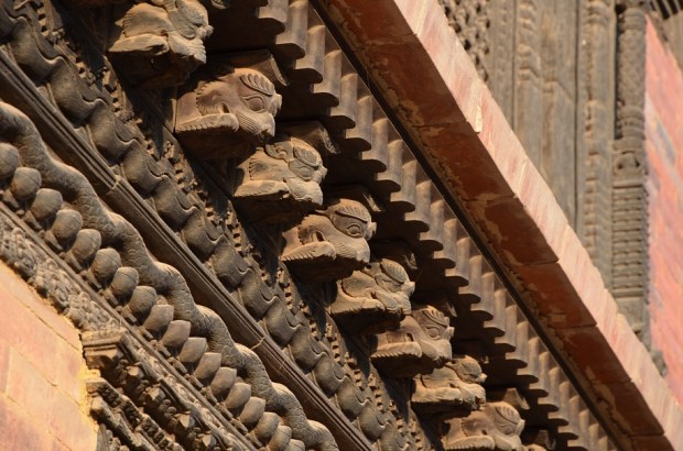 Most come to Bhaktapur on a day trip from nearby Kathmandu, but Bama and I had given ourselves several days to wander its winding, medieval-era arteries, and marvel at the sculptural details and the continuity of time-honored traditions. We left our hotel first thing in the morning to see artisans molding pottery into shape from wads of wet clay, before placing them in neat rows on the paving stones to dry in the sun. At every turn, in the bronze lions marking the entrance to an important building, the fabled Peacock Window just off Dattatraya Square, and the erotic woodcarvings on the 15th-century Pashuputinath (or Yachheswor Mahadev) Temple, we saw evidence of the artistic prowess of the Kathmandu Valley’s indigenous residents – the Newar people.