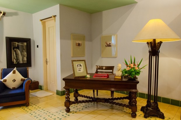 When operations manager Suhartini (who, like Sukarno, goes by one name) unlocks the door to the Sang Fajar Suite, the aura of reverence is such that I instinctively feel the need to remove my footwear. It is a veritable shrine to Sukarno and his ideas. Countertops and the sturdy desk carry portraits and busts of the statesman, while a wooden Garuda Pancasila, the Indonesian national emblem modeled after a Javan hawk-eagle, takes pride of place on a wall. There are display cases and antique cabinets stocked with all sorts of memorabilia: yellowing books about the former president and his family, independence-themed posters, and an original painting of a Balinese woman by Sukarno himself. But nothing is quite as touching as a handwritten note from Kartika Soekarno, a daughter who grew up in Europe: “Last night after praying at Bapak’s grave, I have visited for the first time the room you have dedicated to him. Thank you for capturing his spirit and moments of Indonesian history.”