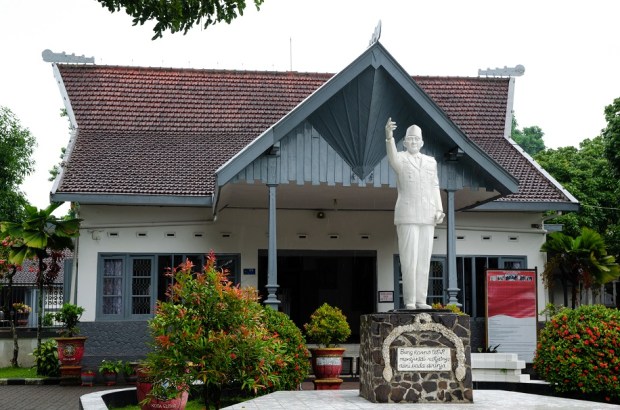 After breakfast the next morning, Bama and I set out for Istana Gebang, Sukarno’s childhood home. “Istana” means “palace” in Indonesian – though in this case it really describes a series of single-story bungalows linked together by covered walkways. Surprisingly, we have the place almost entirely to ourselves. A wizened guide walks us through the various rooms, including the former kitchen and a garage containing Indonesia’s first presidential vehicle.