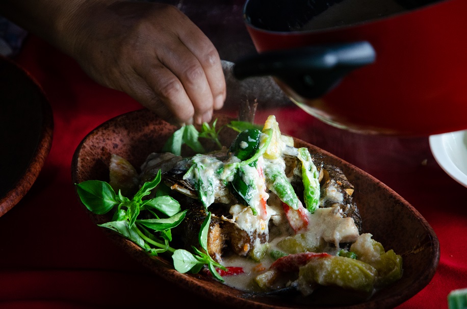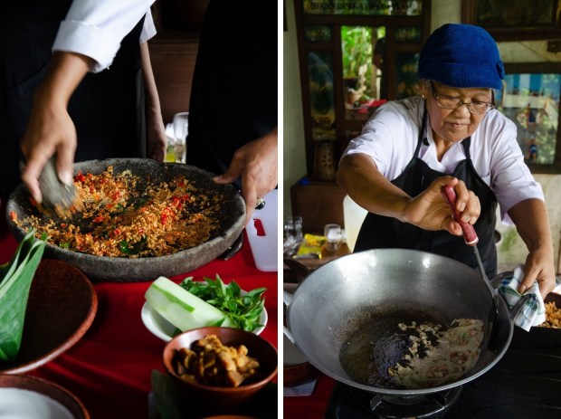 Waroeng Jawa also provides the setting for a three-hour cooking class led by chefs Winarno and Musinem. The latter, it turns out, is a veteran of the hotel kitchen. “She started working here before marriage,” Suhartini explains. “Now she has four grandchildren.” Bama and I watch intently as the chefs prepare two Blitar specialties, nasi pecel – white rice with a medley of boiled vegetables in an aromatic peanut sauce – and kotokan kutuk belimbing wuluh. The long-winded Javanese name describes a meaty freshwater fish (snakehead murrel) that is deep-fried before being slathered in coconut milk, various spices, tomatoes, and tart bilimbi fruit. “People usually substitute catfish for this,” Musinem says. “Kutuk is more expensive and rarely available – it’s caught from the swamps.”