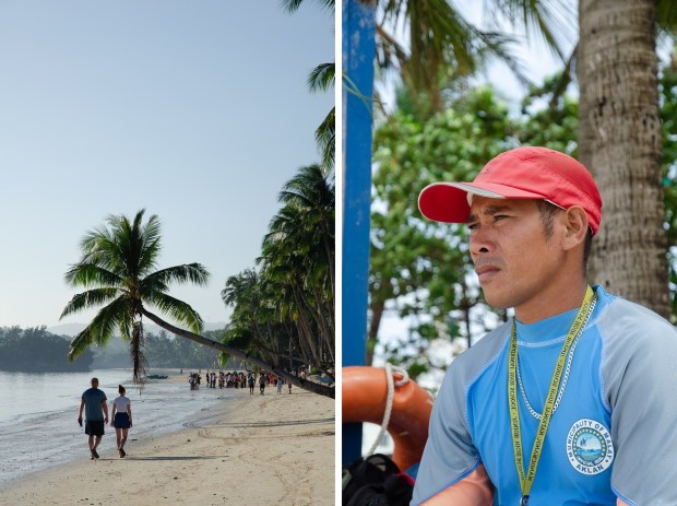 Strolling down Bulabog’s shores at low tide; a lifeguard on White Beach